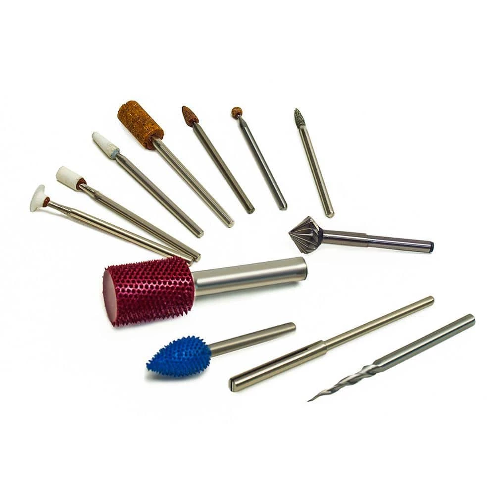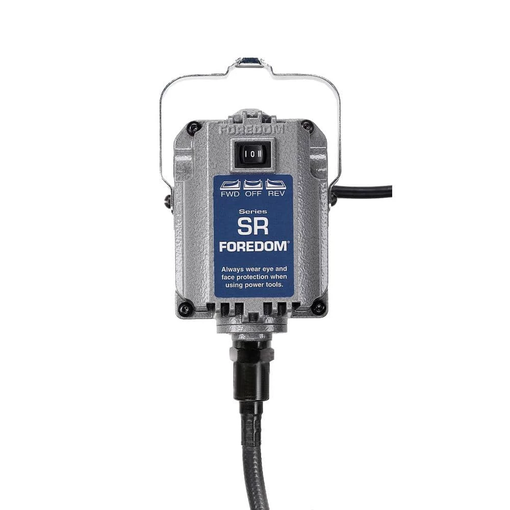 Foredom professional Industrial Base and Yoke Mounted Rotary Tool Kit. This kit includes the Foredom Base and Yoke Mounted SR Motor with built in Dial Speed Control, H.44T Collet Style Hand-piece, and 12-piece rotary accessory assortment with 3/32 in. 1/8 in. and 1/4 in. shank accessories. It includes many unique items from Foredom including Aluminum Oxide Stone points, diamond plated bur, steel cutter, Typhoon carbide burs, carving drill and split mandrel.