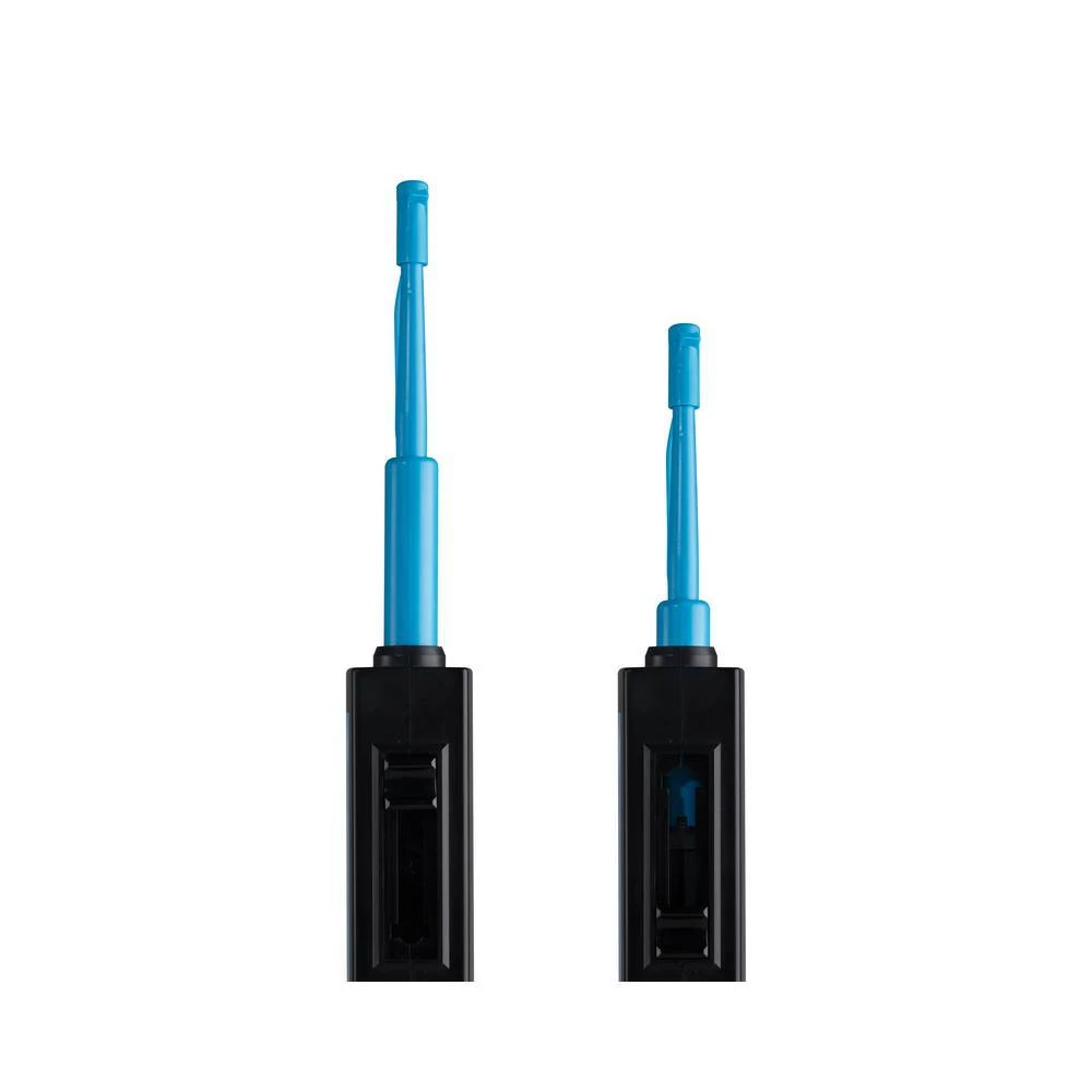 The FCC-250 Fiber Connector Cleaner 2.5 mm quick click ferrule end face cleaner is designed to provide exceptional cleaning performance by cleaning FC SC and ST connectors beyond the critical fiber core area and cleaning deep into the contact area of a bulk head adapter or connectors on fiber optic cables. The tethered dust cap provides protection for the micro fiber cleaning fabric and is an adapter for connector end face cleaning. The FCC-250 features a patented 360° Rotational Tip for extra wide cleaning easy one push operation and extendable nozzle providing an additional 1.5 in. for a nozzle length of 4 in. to aid in accessing deep ports or crowded access panels. Additionally, the FCC-250 uses a non-woven micro fiber that is lint free. The FCC-250 provides 800+ cleanings and has an indicator window near the bottom of the housing so user can visually see how much cleaning material is left. The outer body is made from static dissipative material for ESD safe work. Patented Cleaning Technology Slide-Guide non-slip micro tape feeder guarantees high reliability and the Dual Rotational tip provides superior ferrule end face cleaning.