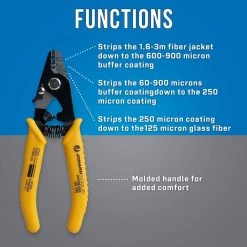 - High precision: The tool can strip the outside fiber jacket from the interior buffer coating and 250 micron cable all the way down to the 125 micron glass fiber without nicks or scratches