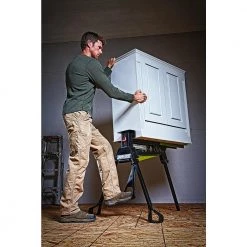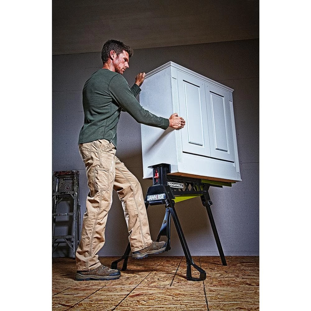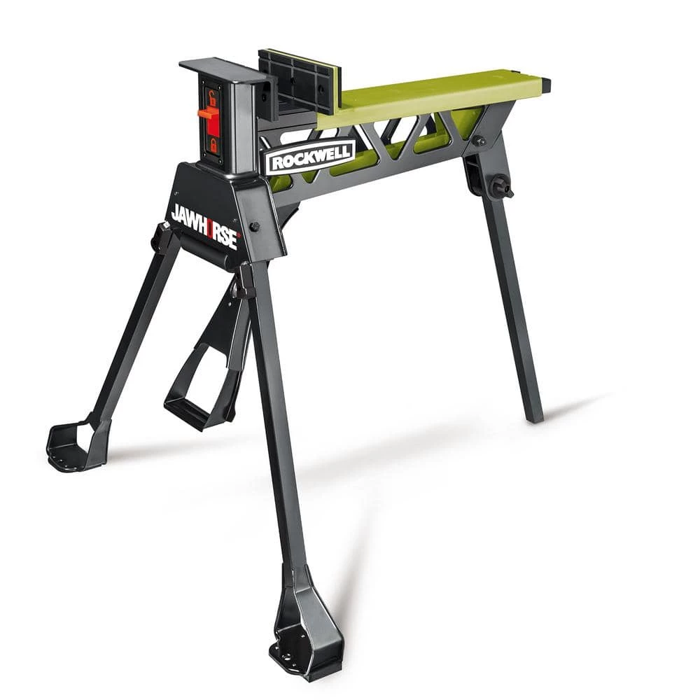 - [EASY TO MOVE] Easy to store. With quick-release leg latches the JawHorse quickly folds down and unlockable wheels make it easy to push