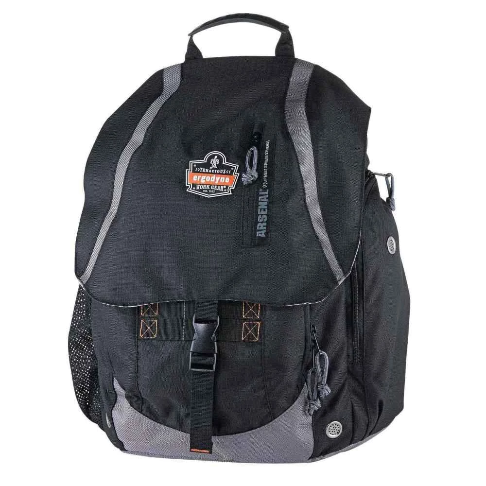 The Arsenal 5143 General Duty Gear Backpack to makes your life easier by keeping the gear you need clean, dry and organized. This traveling backpack features a large main compartment with plenty of room for your everyday essentials, organizational pockets to house smaller items and a laptop/tablet sleeve to protect your devices. This heavy-duty backpack is super durable made with 600 denier polyester material to withstand wear and tear for long-lasting performance. The bottom is reinforced with a 1680 denier polyester. The reinforced handle and adjustable padded shoulder straps make transporting this bag around easy.