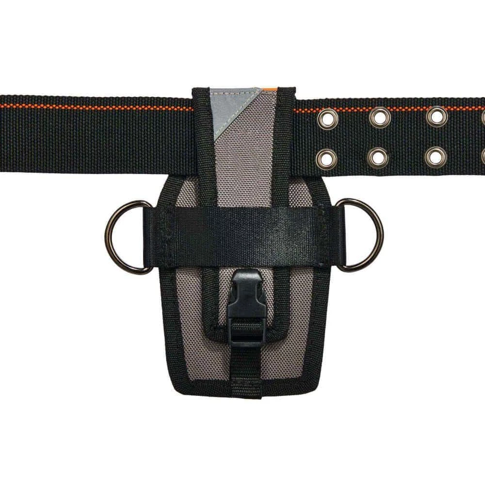 - Modular buckle connection system on back for easy attachment and removal to fall protection harnesses and tool belts