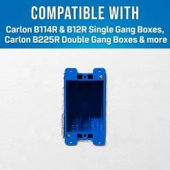 - Compatible with: Carlon B114R and B12R single gang boxes, Carlon B225R double gang boxes, Carlon SC100RR low voltage plates, Arlington Industries LVL1 and LVL2 boxes, and many other brands of non-metallic single and double gang boxes