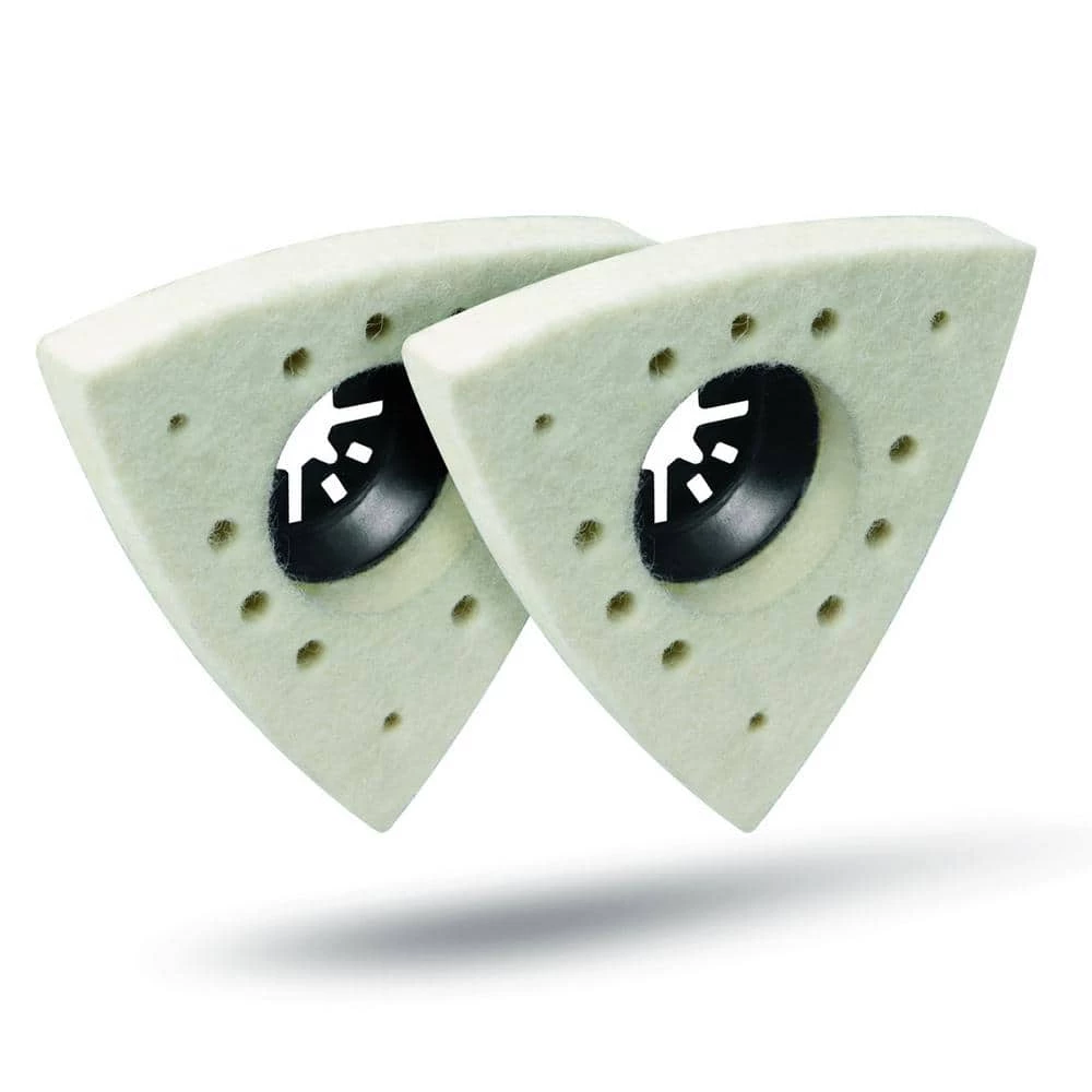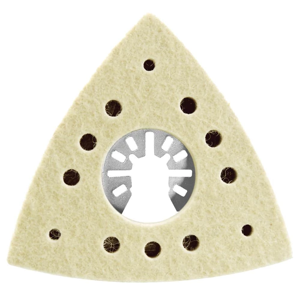The Rockwell RW8940 felt polishing pad for the Sonicrafter, polishes stainless steel, chrome, gold, silver, brass, glazed stone, granite, tile surfaces and finished fiberglass. The triangular shape of the felt polishing pad offers more precision when polishing delicate surfaces. The Rockwell RW8940 can be used for any Rockwell Sonicrafter.