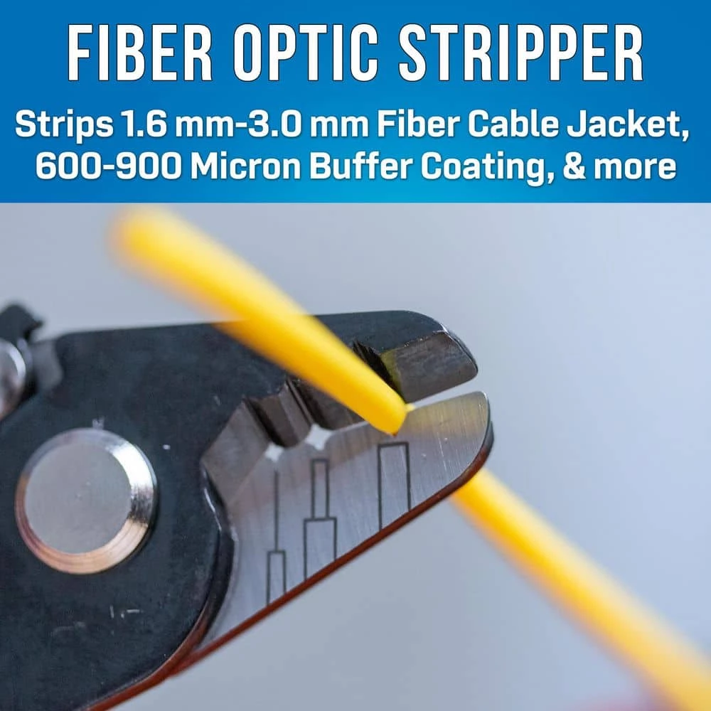 - Kit includes: fiber optic 3 hole wire stripper, Electrician’s scissors, molded tool pouch