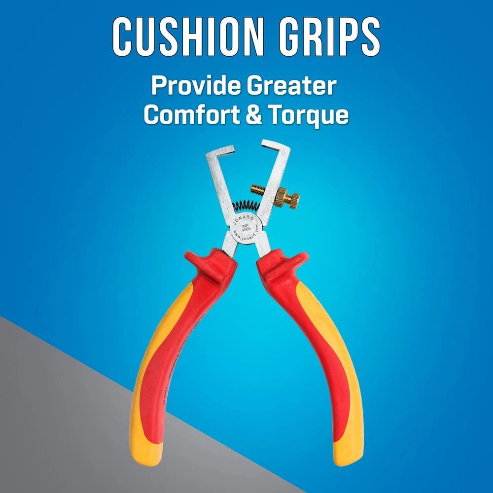 The Jonard TK-110INS 11-piece insulated tool kit is manufactured to International Electrotechnical Commission (IEC) 60900 standards for use in hazardous work environments and includes seven screwdrivers (three Phillips and four slotted), three pairs of pliers, and a wire stripper. All tools are tested to 10,000 volts alternating current (VAC) and rated for 1,000 VAC live use. The pliers and wire stripper have thumb guards between the handle and the uninsulated jaws to help protect the user from exposure to live wires. The wire stripper works on single conductor or stranded wire sizes ranging in size from 8 to 30 AWG. This kit is compliant with the Restriction of Hazardous Substances Directive (RoHS). Insulated hand tools help protect electricians from accidental contact with energized circuits.
