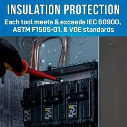 - Insulated hand tool set manufactured to IEC 60900 standards for hazardous work environments