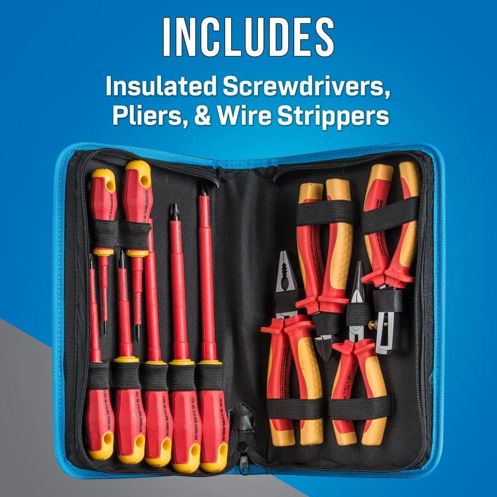 - Kit includes seven screwdrivers, three pairs of pliers, and one wire stripper