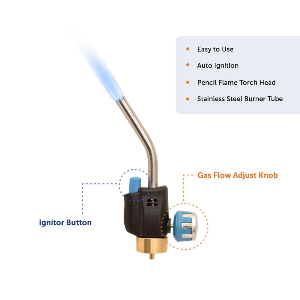 The Flame King YSNAX1-088 propane torch head is designed for professional Multi-Purpose welding and includes an instant on/off trigger ignition which provides easier lighting and increased fuel savings. The adjustable flame control allows for a more precise flame for various applications. CGA600 inlet – for use with 1 lbs. cylinders. LEASE NOTE: Flame King 14.1 oz. Refillable Propane Cylinder NOT included.