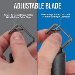 - Cable stripper strips the jacket from round cables 3/16 in. to 1 1/8 in. (4.5 to 29 mm) diameter