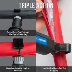 - Makes longitudinal cuts for end stripping, spiral cuts for end stripping and mid-span cuts, and circular cuts for jacket removal