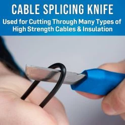- Cable splicing knife: used for cutting through many types of high strength cables and insulation, ergonomic non-slip grip for increased comfort and control
