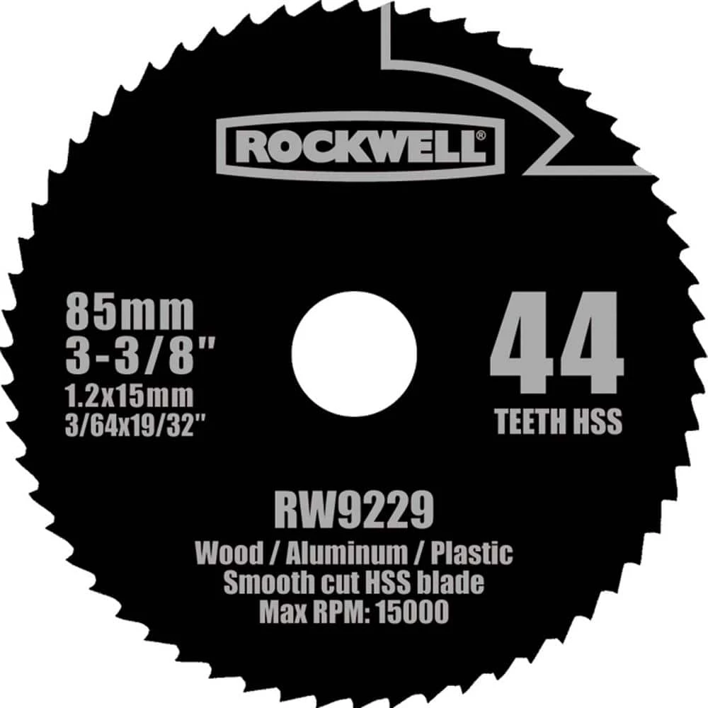 The Rockwell VERSACUT 3-3/8 in. 44-teeth HSS blade is suitable for cutting aluminum, wood, plastic, and drywall. The Rockwell VERSACUT (RK3440K) tool is not included.