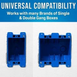 - Universal compatibility: works with Carlon B114R and B12R single gang boxes, Carlon B225R double gang boxes, Carlon SC100RR low voltage plates, Arlington Industries LVL1 and LVL2 boxes and many other brands of single and double gang boxes